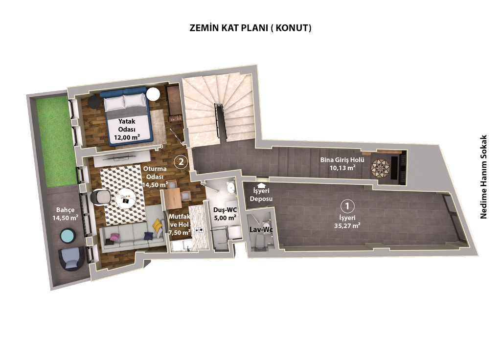 | 1 | İşyeri | 35,27 m2 | SATILDI | Zemin Kat | Emekli Bankacı |