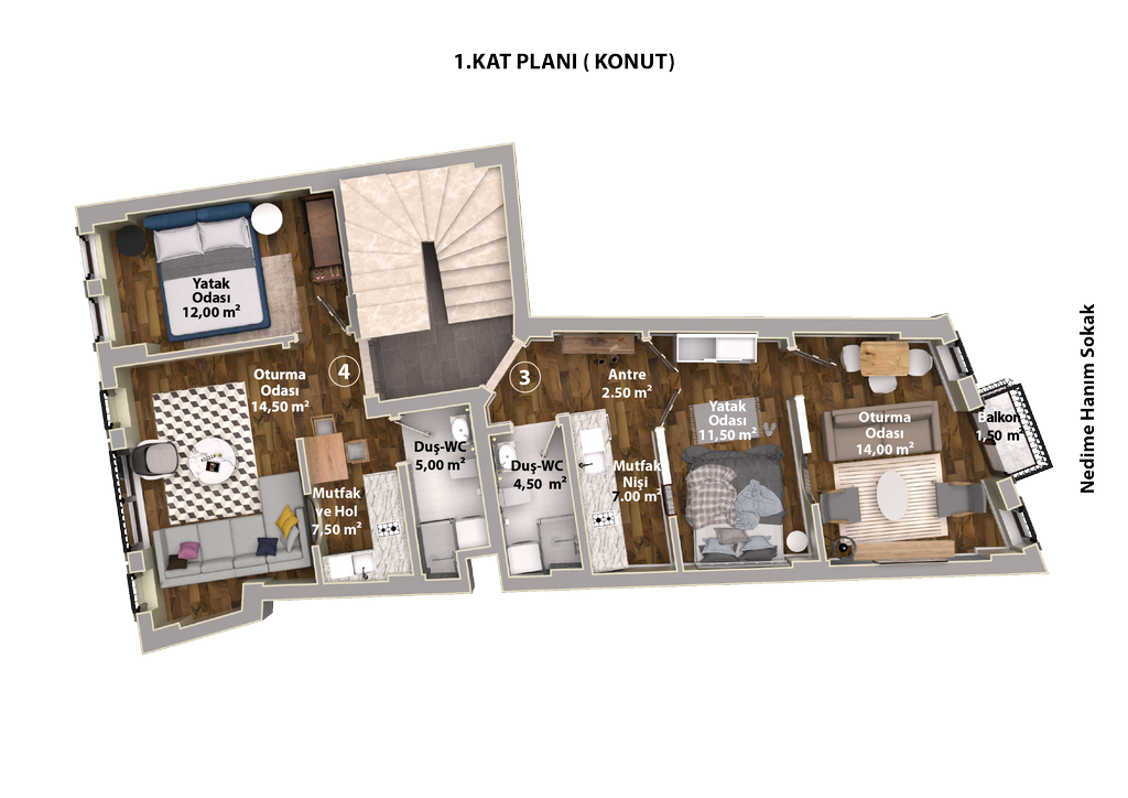 | 3 | Ofis-Daire | 47,6 m2 | SATILDI | 1.Kat | Hostes / THY | |