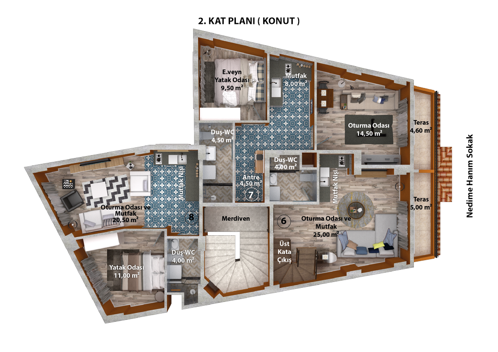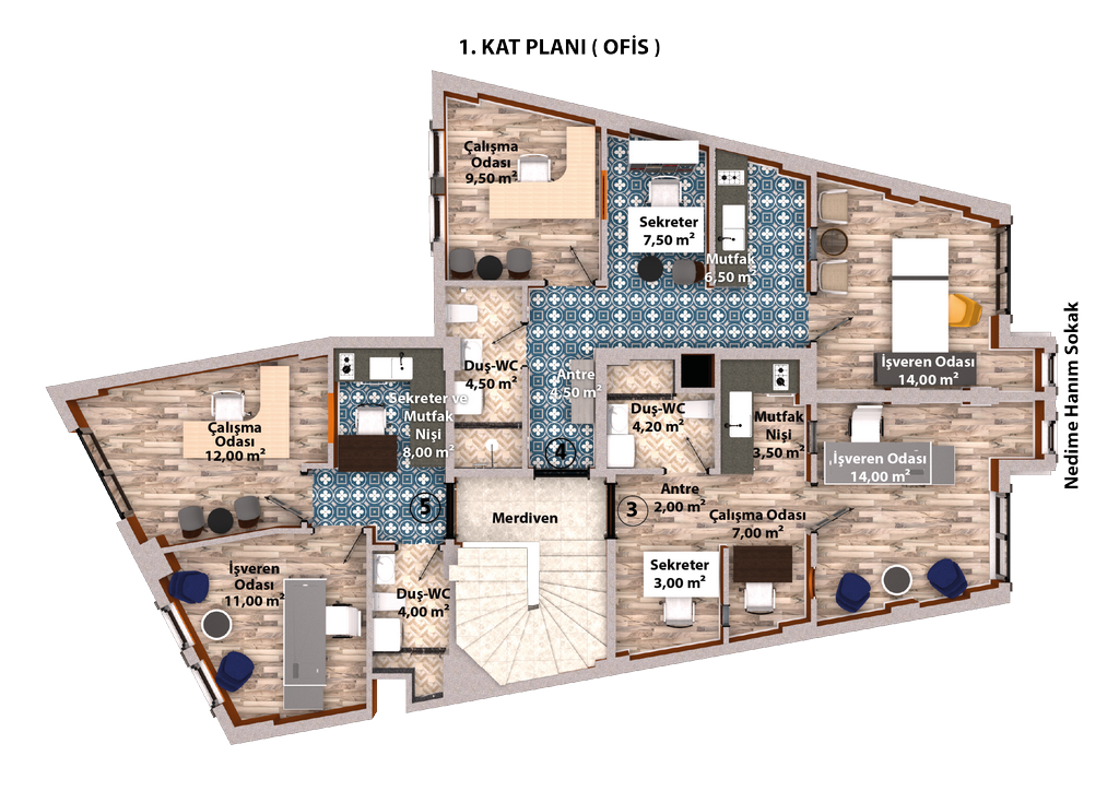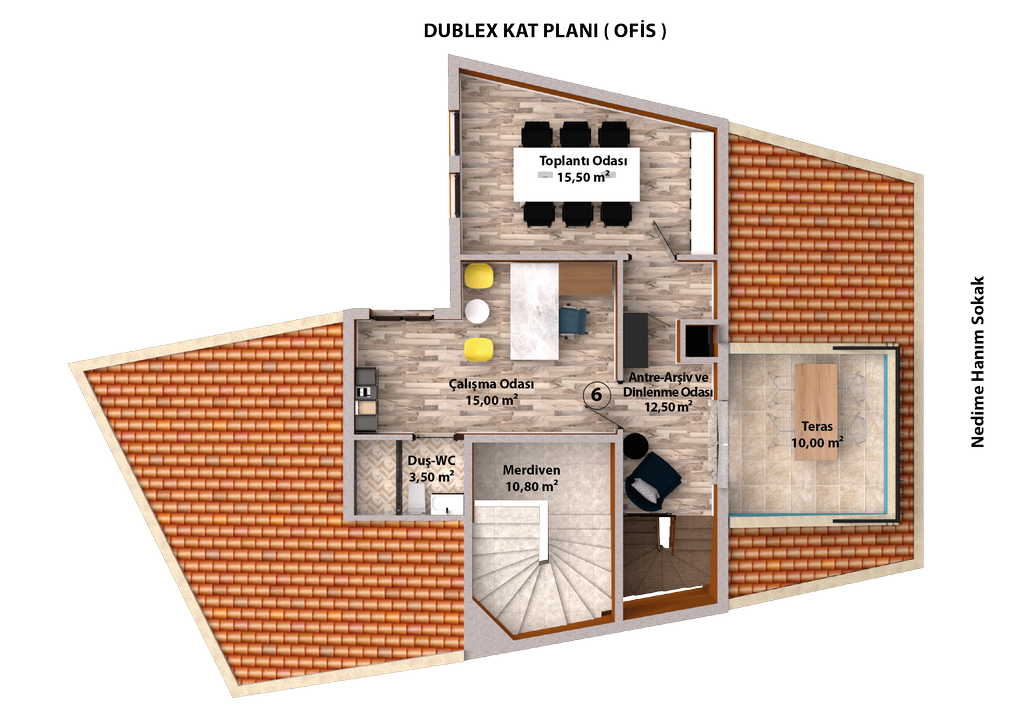 | 6 | Dublex Ofis-Daire | 85,64 m2 | SATILDI | 2.Kat | Avukat / Noter | |