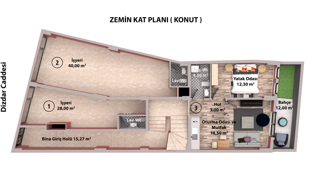 | 2 | İşyeri | 40 m2 | SATILDI | Zemin Kat | Emekli Ordu Mensubu | |