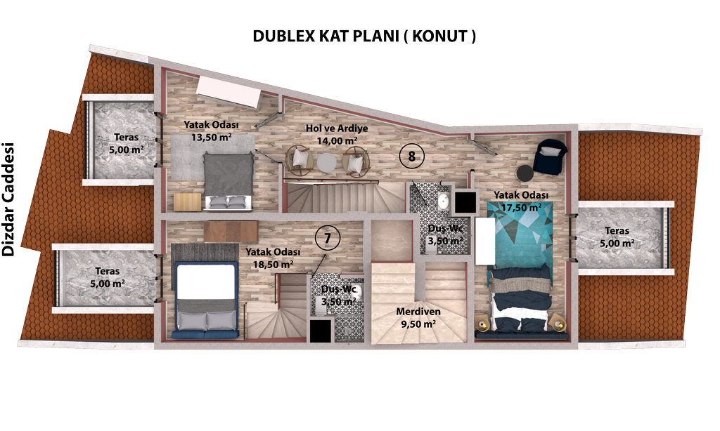 | 8 | Dublex Ofis-Daire | 96,51 m2 | SATILDI | 2.Kat | Öğretmen / Orta Öğretim | |