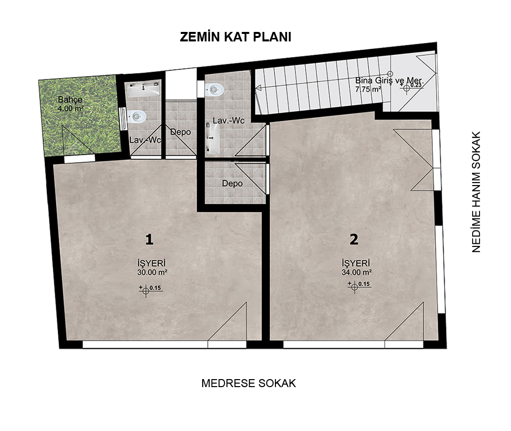 | 1 | İşyeri | 30,00+4,00 m2 | SATILDI | Zemin Kat | Elektronik Müh. |