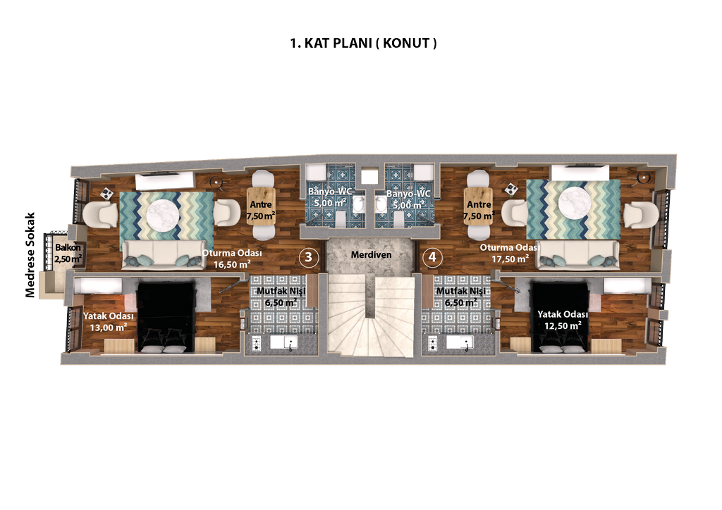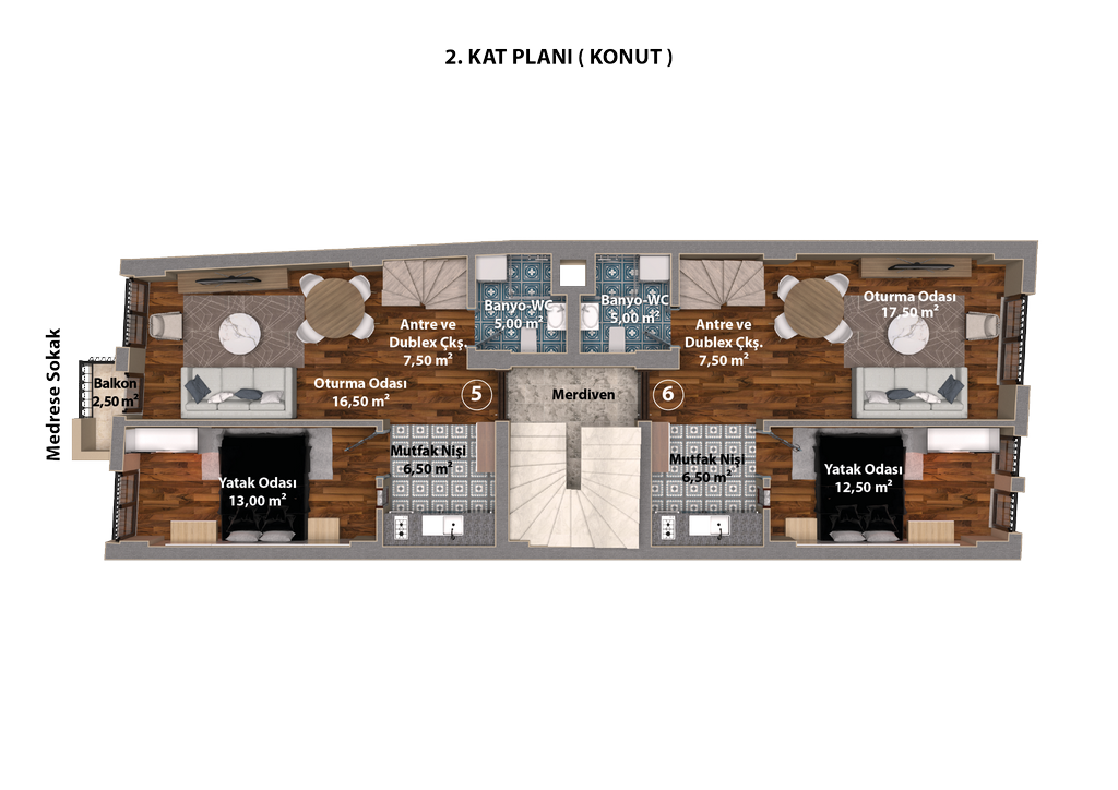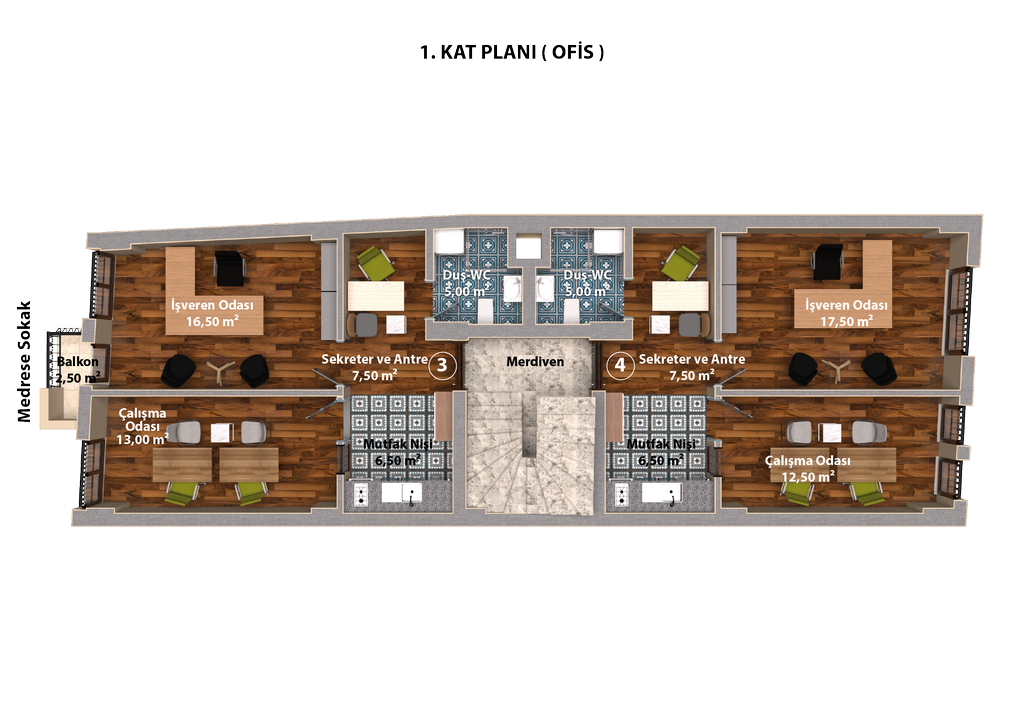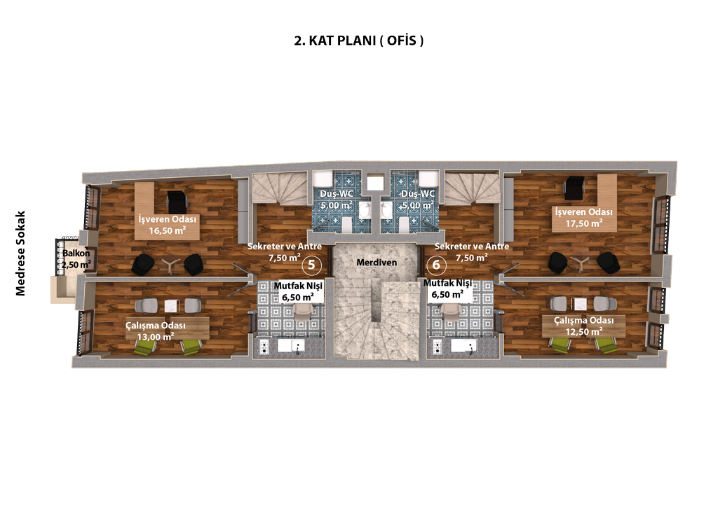 | 5 | Dublex Ofis-Daire | 89,59 m2 | SATILDI | 2.Kat | Doktor / Aile Hekimi | |