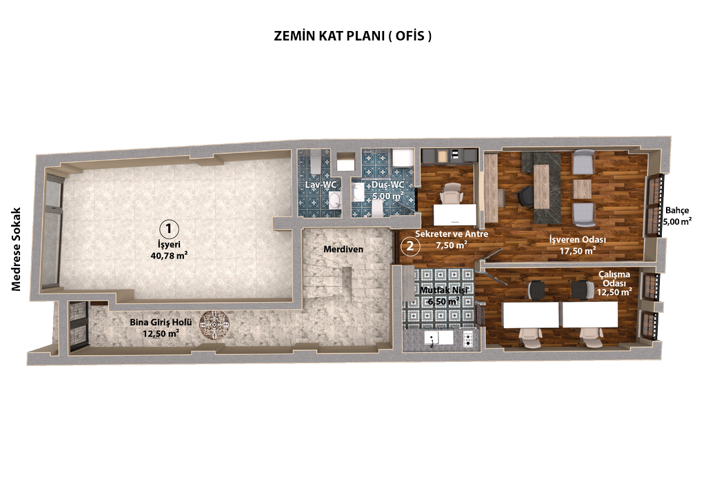 | 1 | İşyeri | 40,78 m2 | SATILDI | Zemin Kat | Endüstri Müh. |