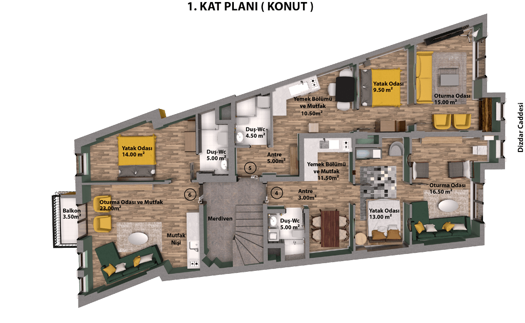 7 | Dublex Ofis-Daire | 89,60 m2 | SATILDI | 2.Kat | Öğretmen | |
