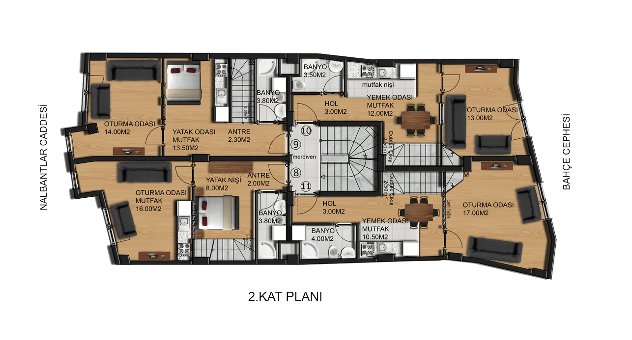 | 11 | Dublex Ofis-Daire | 68,55 m2 | SATILDI | 2.Kat | Öğretmen | |
